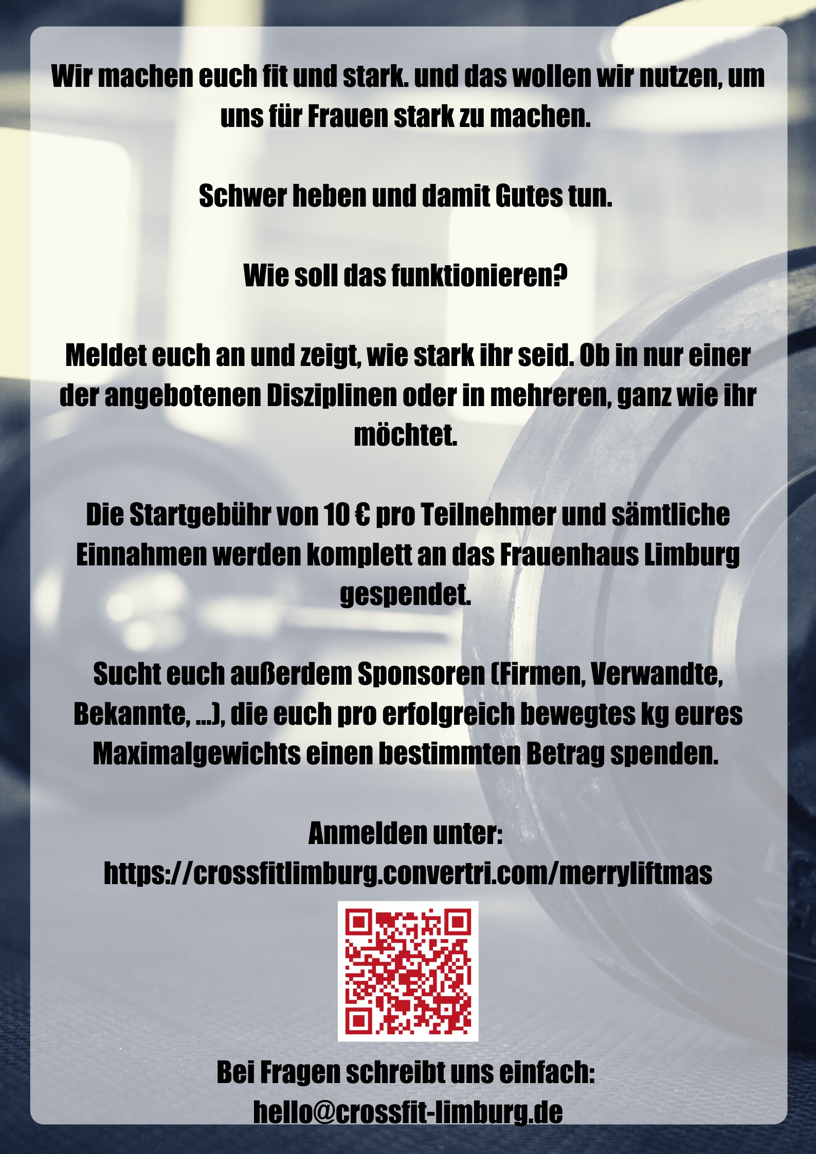 ....schwer heben und etwas Gutes tun...unter diesem Motto veranstaltete Crossfit Limburg eine Spendenaktion zugunsten des Frauenhauses Limburg....wir waren dabei .... insgesamt sind über 2000 € zusammen gekommen